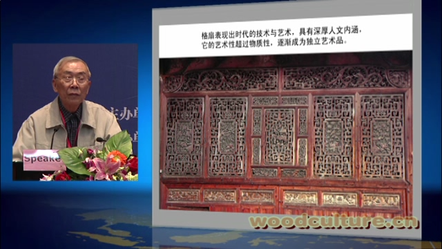 从天花、格扇说明:树木被砍伐终止了生命,它被用在建筑上,通过工匠的精心创造,又获得新的物质与艺术生命,形成为建筑上的木文化。