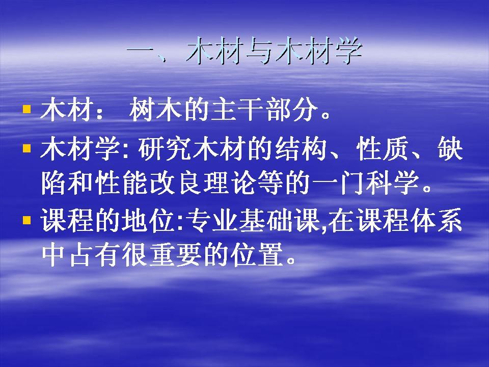 木材学:研究木材的结构、性质、缺陷和性能改良理论等的一门科学。