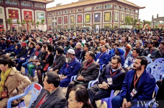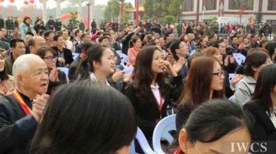 2014世界木材日暨首届国际木文化节于3月21日在福建仙游古典工艺博览城正式开幕,图为开幕式现场, 众多观众聚集在舞台前。