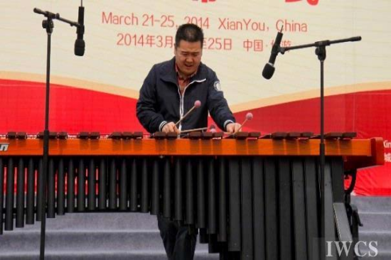 王家训打击乐队演奏家王申为观众表演马林巴