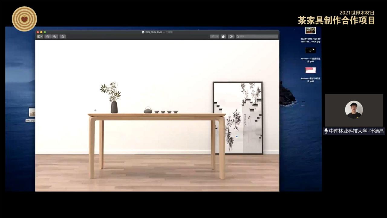 由国际木文化学会和世界木材日基金会共同主办的“茶家具制作合作项目”共有12位来自全国各大院校的优秀青年学生参加,他们发挥各自专长,组成4组合作团队,以“2021世界木材日”“木与二氧化碳”作为主题,通过线上线下相结合的方式,合作制作一套包含茶桌、茶椅、茶凳和茶水柜的茶家具。