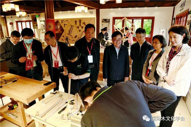 中国野生植物保护协会副会长李修平、秘书长李润明,以及木文化工作委员会主任余小发,江西环境工程职业学院副校长曾东东和家具学院副院长张付花等相关领导莅临活动现场,他们逐一巡视各个体验项目,并与匠师亲切交谈合影,对于活动的丰富内涵和深刻意义给以高度评价和赞赏。