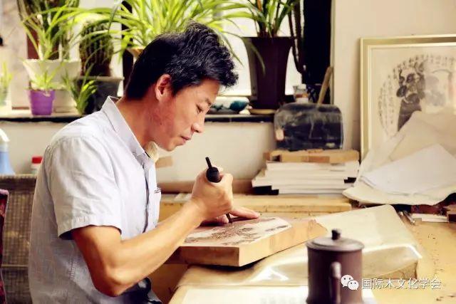 高级木雕技师路民先生将雁皮纸画稿粘在木版上,开始“操刀如笔”进行雕刻。他说:“我要通过我的雕刻将原作线条的转折、顿挫如实地反映在木版上,不能有丝毫的‘创作’之心” 。