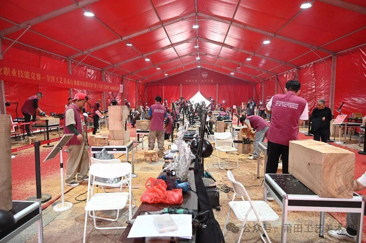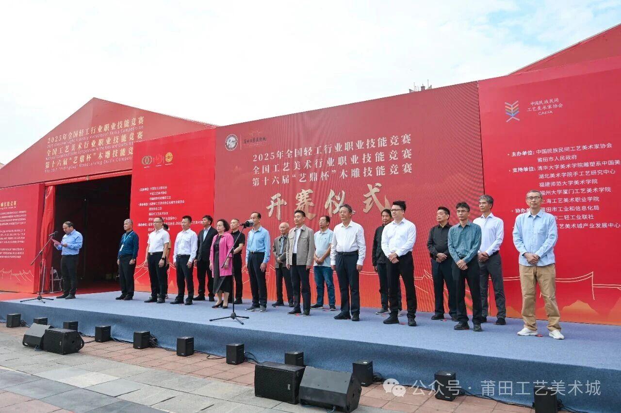10月27日,2025年全国轻工行业职业技能竞赛、全国工艺美术行业职业技能竞赛、第十六届“艺鼎杯”木雕技艺竞赛在莆田工艺美术城鸣锣开赛。本届大赛由中国轻工业联合会、中国工艺美术协会、中国财贸轻纺烟草工会主办,福建省工艺美术协会木雕专业委员会、莆田市总工会、莆田市工艺美术协会、莆田工艺美术城产业发展中心承办。