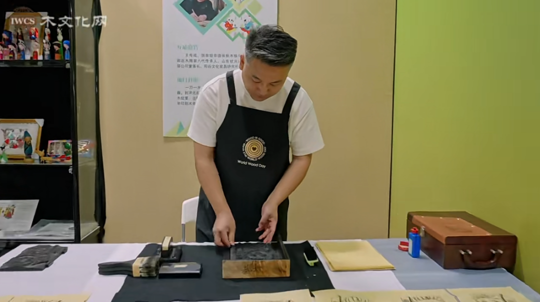 展会现场,王志达先生亲自演示了历史悠久的张秋木版年画拓印技艺。调墨、铺纸、拓印……一系列行云流水的动作,蕴含着深厚的功力。当鲜活的图案跃然纸上,古老的故事与吉祥的寓意瞬间被激活,引来众多参观者围观。