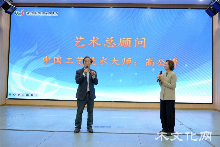 11 月 4 日,温州市特殊教育学校三楼多功能厅木艺飘香,“多彩非遗・共融共创 —— 中外艺术家进特校活动” 温情启幕。国际木文化学会秘书长苏金玲、中国工艺美术大师高公博,希腊艺术家乔治斯・阿萨纳萨基斯、塞浦路斯艺术家安特里・帕菲蒂及温州非遗大师代表,与该校近百名师生共赴跨国非遗盛宴。活动由该校教师曾友峰主持,程页川、金阿亚分别提供英文与手语翻译,确保文化心意无障碍传递。
