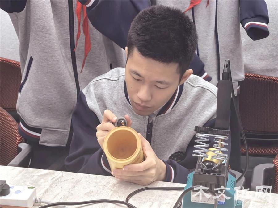 高公博不仅分享了与特校学子的非遗传承故事,还为学校文创品牌现场题字,笔锋间兼具传统笔墨韵味与木艺刚劲,为后续 “多彩非遗” 系列文创开发注入 “校园温度”。
