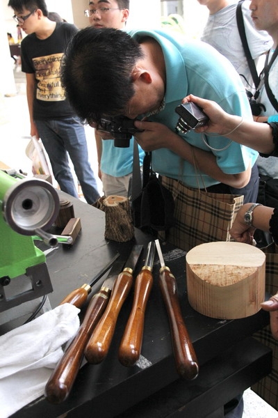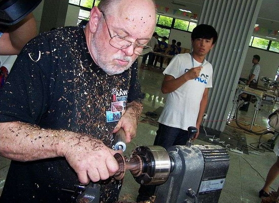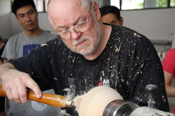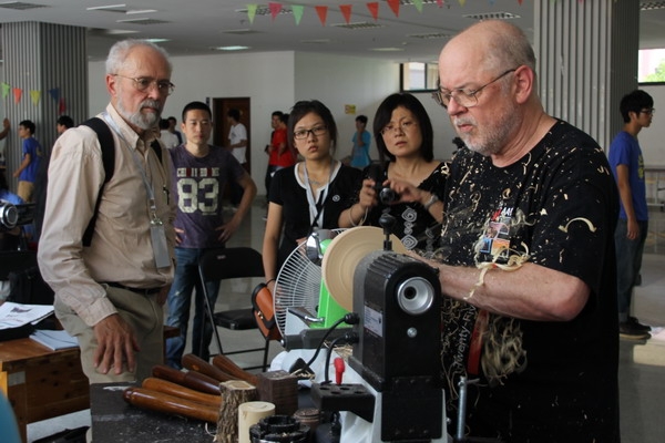 With a nice outcome from AAW's San Jose meeting, IWCS was honored to have Terry Martin as a guest speaker representing AAW to symposium at ZHEJIANG Agriculture and Forestry University in China in September 2012. To spread the idea of Turners Without Borders, Terry showed a different aspect of woodturning and knowledge to local wonders through an excellent demonstration.