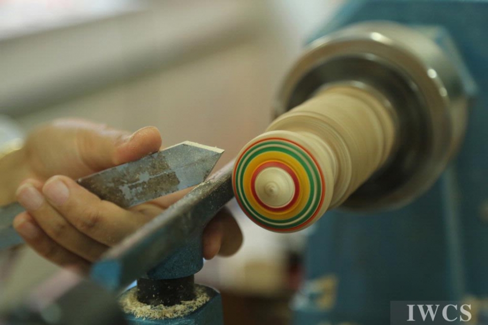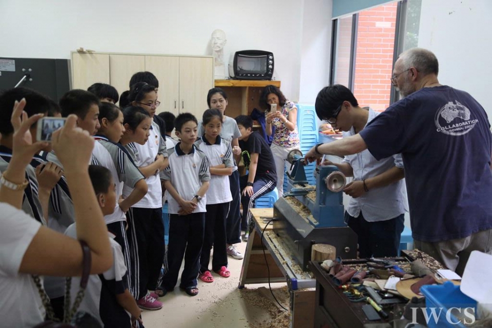 Finger spinning tops are not merely toys but can be a token of love. A total of 150 tops traveled far and landed on the hands of the students of Wenzhou School for Special Education. It was a kind gesture by Australian woodturner Erine Newman, who was invited over to lead a two-week woodturning training course for the collaborative project of IWCS-AAW beginning September 15, 2014.