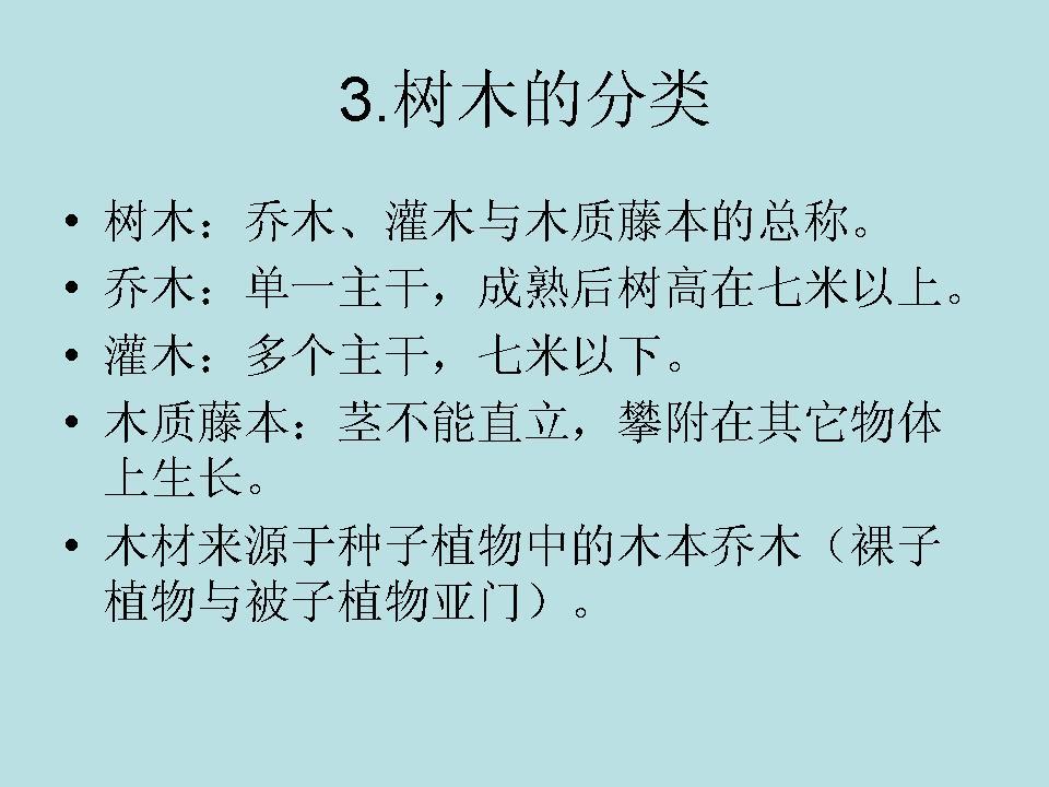 木材来源于种子植物中的木本乔木(裸子植物与被子植物亚门)。