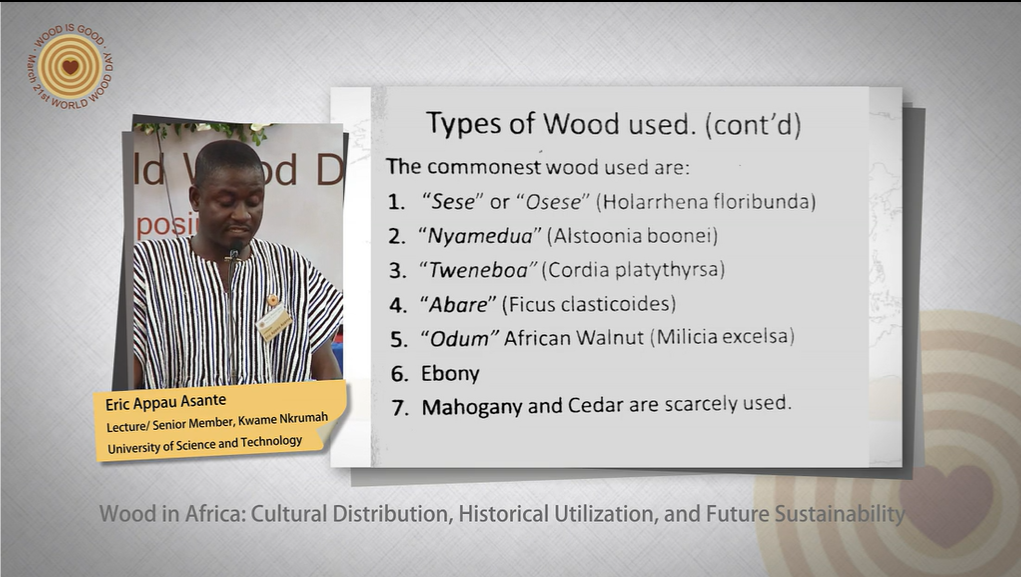 Dr. Eric Appau Asante is senior member and lecturer at the Kwame Nkrumah University of Science and Technology, Kumasi, Ghana. Having his PhD in African Art and Culture, he specializes in the teaching of African Art and culture; Art, Nature and Religion; Cultural Anthropology; Art history; and Philosophy of Art and Education. He has had wide experience in relating nature to culture. For the past seven years, he has concentrated his efforts on studying about Symbolism in African art and culture, wood in the perspective of culture and Art and memorial culture. He is currently the National Coordinator for Wood Culture Society, Ghana.
