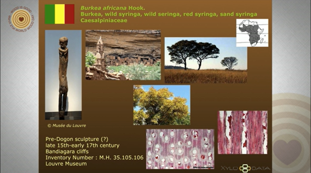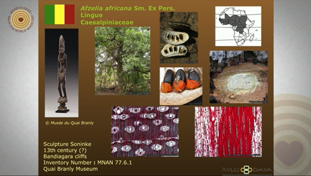 Wood is composed of different types of cells who present microscopic features characteristic of each botanical species or genus. It is generally possible, on the basis of a small fragment of wood, to determine which species of tree it came from, among the thousands growing on the African continent. The botanical identification of some sculptures and masks from western tropical Africa, together with the determination of other archaeological, ethnographic data and Radiocarbon analysis, allow a better definition of selection criteria for timber in this Region. The wood from the sculptures all came from different species and it is sure that most of them are not chosen at random by the artist.