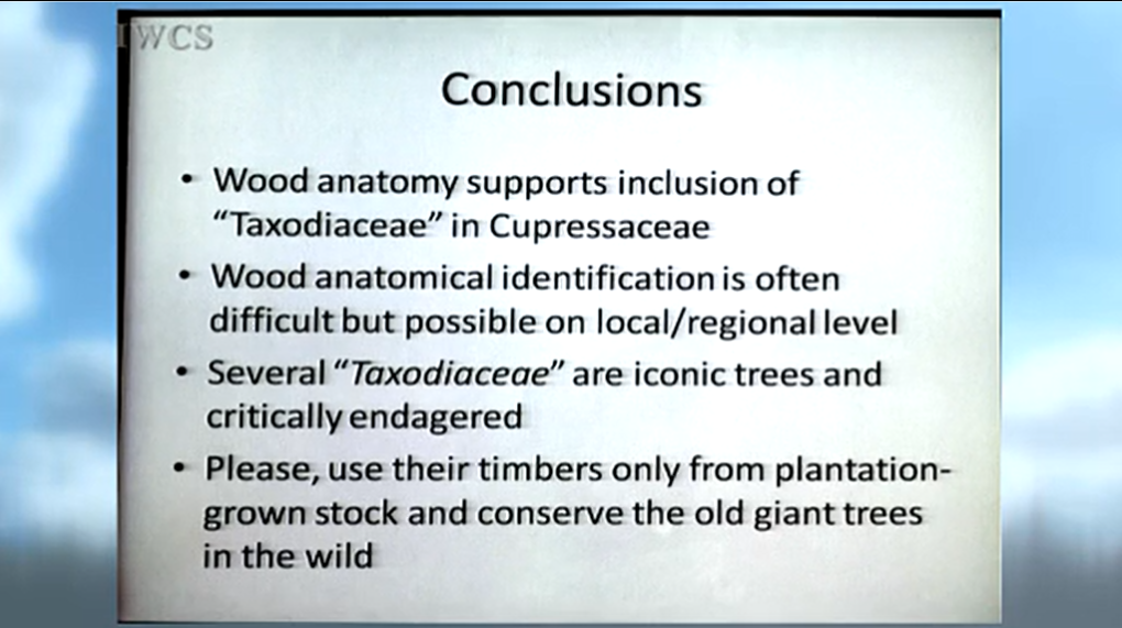 Several former Taxodiaceae are iconic and majestic trees in their natural distribution area. Many are also highly endangered, mainly through overexplotation in the past of their even-grained low- to medium density timbers. Their greatest promise for wood culture today and in the future is as a source of timber from plantation grown stock or as much enjoyed trees in nature reserves and as park or roadside trees.