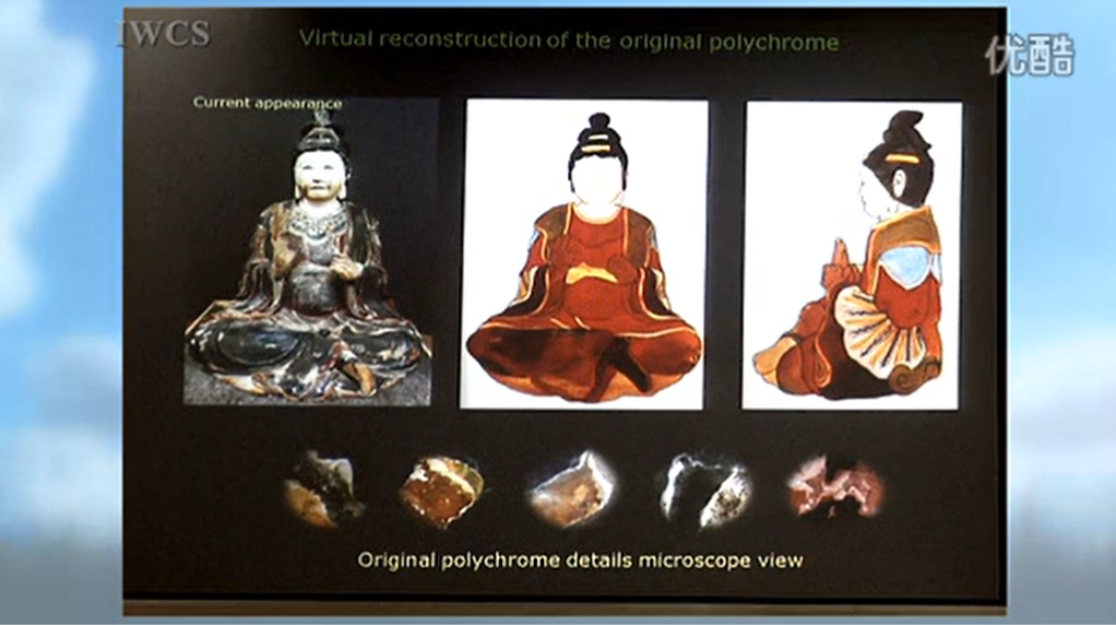 Abstract: During the study and the preservation-restoration of a sculpture of Japanese origine, we proceeded to an analysis of the support to clear up the numerous questions which aroused this work. Made of painted wood, this statue could embody a Shintoist divinity being a member of the category of Myoijin. It is a heiress of techniques "Yosegi zukuri" and "Gyokugan", developed since the period Heian. This work was made at the beginning of period Edo; when the aestheticism in the craft production was prosperous and during the historic context ofseizure of power by Tokugawa’s and the politics of closure of the Japanese country. The oldest polychromy is at present covered with “surpeint” but the numerous gaps of polychromy could allow an analysis of the wood according to the archaeodendrometrical methods respecting the integrity of the work. The examination was to define the homogeneity of this set consisted of numerous wooden fragments, to determine the species, to specify the dating and the origin of the woods and to interpret the results.