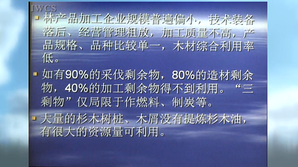 资源利用率不高,90%的采伐剩余物,80%的加工剩余物,40%的加工剩余物得不到利用。“三剩物”还局限于作燃料、制炭等。