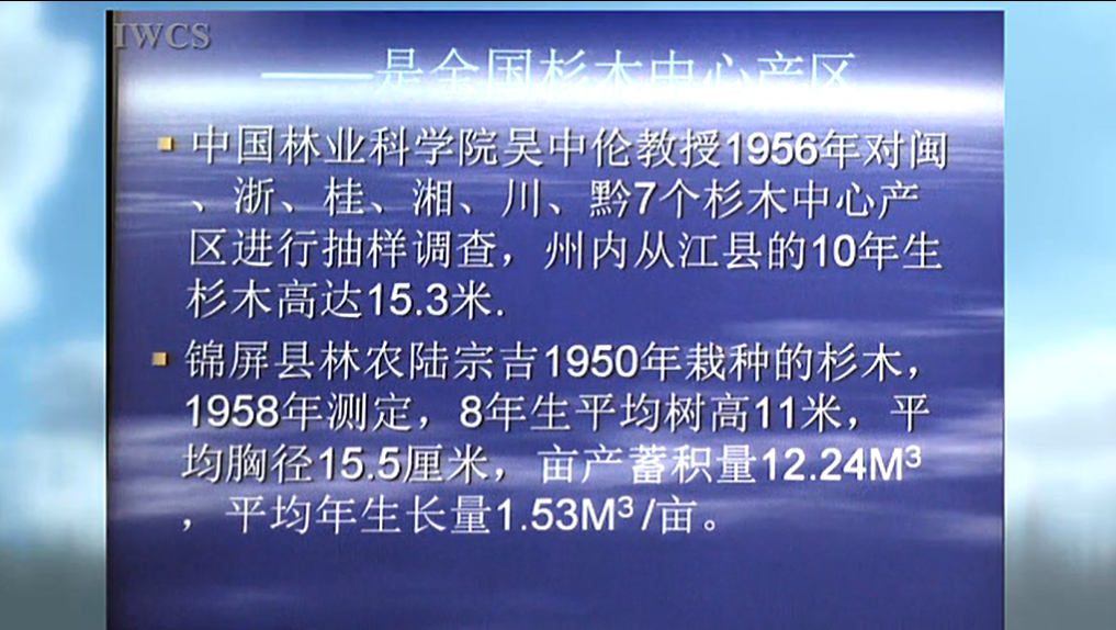 基础研究:杉木种子园已进入 高世代研究阶段;黔东南杉木有4个品种认(审)定为杉木良种;完成黔东南州杉木树高级一元活立木材积式编制;独立完成“贵州省杉木速生丰产林标准”、 “杉木采穗圃营建与繁殖利用技术研究”等八个项目并获省州科技进步奖。