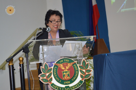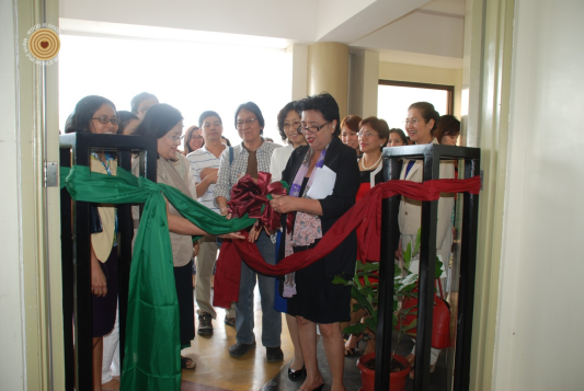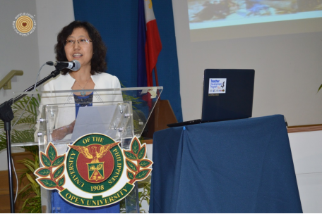 菲律宾开放大学校长Grace Javier Alfonso、副校长Melinda Lumanta和Jean Saludadez为活动剪彩