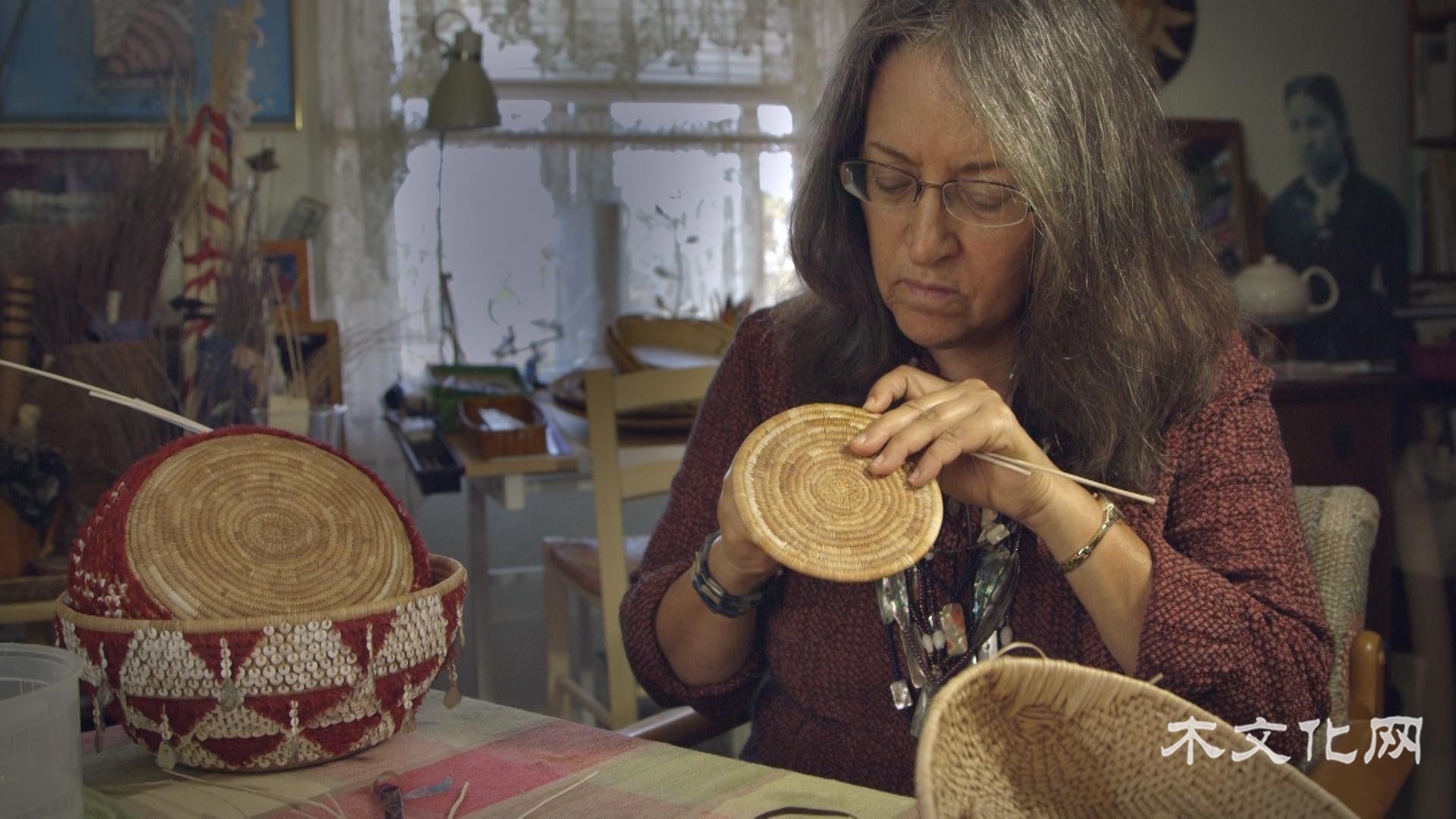 跪在莎草地中,Linda Yamane虔诚地唱完欧隆族人敬仰、感谢植物的歌曲后,开始为她的篮筐编织收集材料。欧隆族(Ohlone)在18世纪西班牙殖民时期,篮筐编织技术一度失传。直到1994年,Linda制作了第一个本部落篮筐,继而恢复了篮筐编织技艺。由柳树条和莎草根编织而成篮筐,在欧隆族(Ohlone)人民日常生活中扮演中一个至关重要的角色,让他们又回到了过去的那个土著年代。复兴错综复杂的篮筐编造技艺的同时,Linda也对这门古老的艺术产生了尊敬和感谢之情。她想让欧隆族(Ohlone)人的精神世代传承下去。