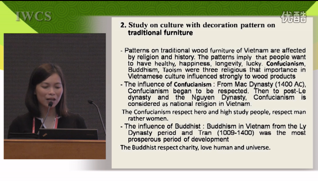 Nguyen Thi Vinh Khanh女士1996年毕业于越南林业大学木材加工专业,之后留校任教并继续在木材科学技术方向深造获得硕士学位。2011年毕业于南京林业大学家居设计和工程方向并获得博士学位。目前在越南林业大学建筑景观与内室设计学院任职。