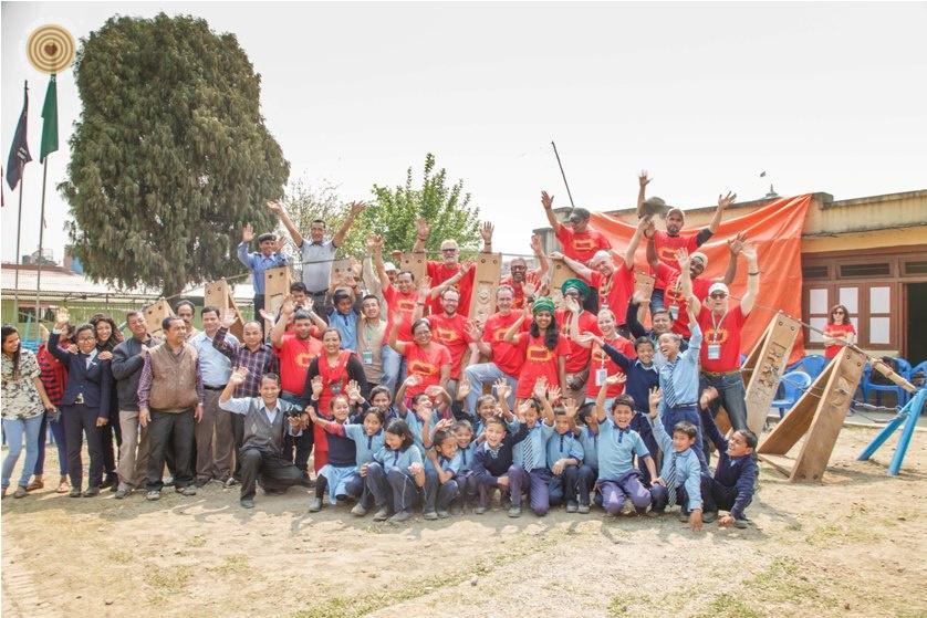 2016世界木材日合作项目延续以往团队合作的形式,继续探索传统与多种实践的结合。项目邀请了来自世界各地的20位木艺术家,他们不仅共同在尼泊尔巴德岗打造了一件精美的木雕作品,还为当地学生们建造了一处木质的互动游乐设施。此外,他们还将130位艺术家捐赠的282块雕花木砖拼接成了一件精美的艺术品,把他们对尼泊尔震后重建的美好愿望寄托于作品中。