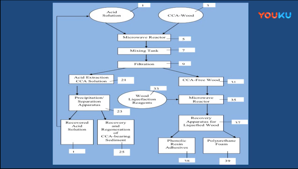 摘要:CCA-treated wood is first extracted in microwave reactor in the presence of acid solutions. the acid extracted CCA solution can then be easily drained off through a filter and separated from the CCA-wood. To this solution, precipitants or complex agents were added and the solution was agitated and then allowed to sedimentation. The sediment; which contains the Cr, Cu, and As; was then separated from the solution by centrifugation or filtration. By this process Cu, Cr, and As were removed by more than 99%, respectively. As the second step, the wood liquefaction reagents are added to the microwave reactor containing the CCA-free-wood and reacts at 120 – 150 0C to converts the spent wood to be used as bio-based raw materials for the preparation of polymer materials, such as polyurethanes and phenolic resins. As the third step, the CCA-bearing sediment were regenerated by adding concentrated inorganic acid such as sulfuric, nitric or phosphoric acid, and reused in the preservation industries of wood. Since the process uses relative low temperature, short reaction time, and relatively small amount of organic reagents, it is an effective and economically feasible technique for recycling of spent CCA-treated wood.