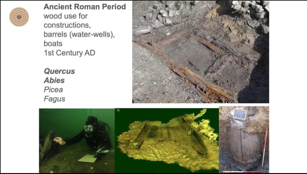 In Slovenia currently 58% ofthe area is covered by forests. Predominating wood species are European beech(Fagus sylvatica), Norway spruce (Picea abies), European silver fir (Abiesalba) and oak (mainly Quercus petraea and Q. robur) and their shares in thewood stock are 32, 30, 7 and 7% respectively. Results of our investigationsshow that availability and use of different wood species largely varied in timeand space. In prehistoric pile dwelling sites at the Ljubljansko barje, 99% ofthe investigated wood belonged to 10 hardwood species, and the proportions ofoak and ash (Fraxinus excelsior) were the highest. Wood species in ancientRoman constructions were mainly oak, silver fir and beech. Various up to500-year old constructions in SE Slovenia were mainly made of oak, whereassilver fir became more frequent in the 18th century and Norway spruce in the19th century. In the NW Alpine region mainly conifers with varying shares oflarch, silver fir and Norway spruce were used. In the coastal region most ofthe wood for building was imported and the choice of wood species varied inagreement with socio-political situation which influenced the timber trade.