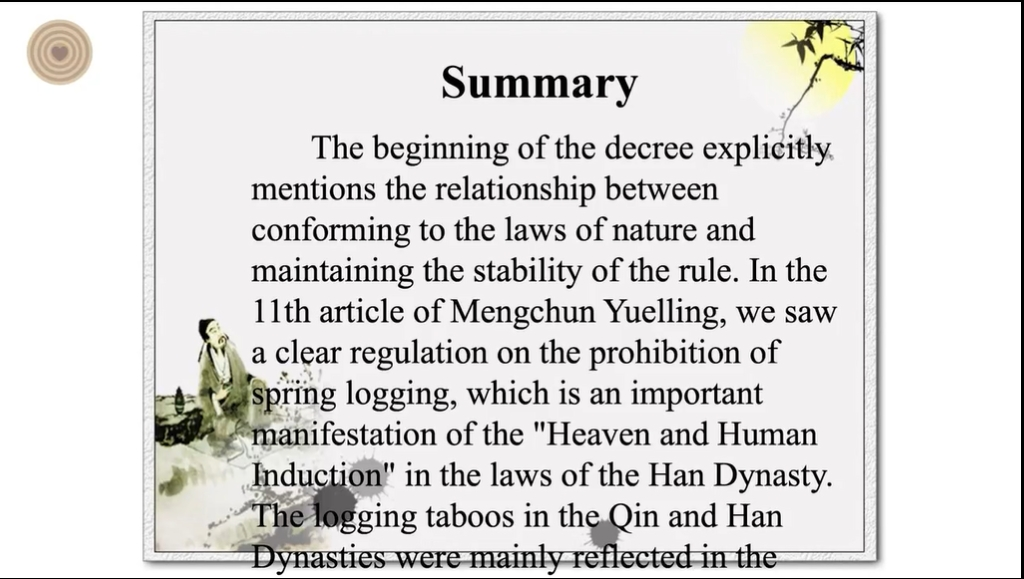 Differentfrom the folk characteristics of space taboos, the time taboos of cutting treesare more from the seasonal education of the ruling class in the Qin and HanDynasties, which required the imperial people to arrange farming activities inaccordance with edicts issued by the imperial court. In the Qin and HanDynasties, the legitimacy of the emperor or dynasty originated from Heaven.Violating the laws of nature was often regarded as the ruler’s disrespect forHeaven, which was likely to bring negative effects on the ruling of thedynasty. Therefore, the dynasty made the seasonal education according to thelaws of nature that people should abide by. Spring is the season in which allthings grow and multiply, so felling in spring is contrary to the seasonal lawsof nature. The imperial court not only taught people through the seasonaleducation, but often prohibited them by imperial edicts or laws. Although thisseasonal education that closely related to the legitimacy of the ruler powerand the cognitive theory of the relationship between heaven and human haslittle relationship with conscious ecological protection concept, it stillcoincides with the green concept of sustainable development of ecologicalenvironment for modern human.