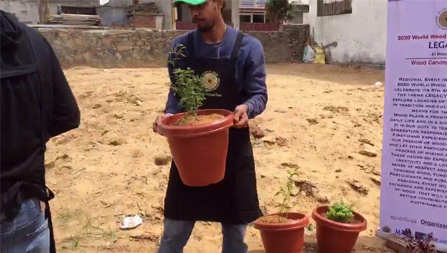 Mohit Jangid和父亲、弟弟商量后决定在3月21日这一天以自己的方式如期庆祝“世界木材日”。他们买了10棵小树苗,种植在当地的一个花园,帮助宣传Ravan Hatta这种民间乐器,父子三人在他们的工作室进行了传统的微型雕刻并展示了精美的木雕作品。