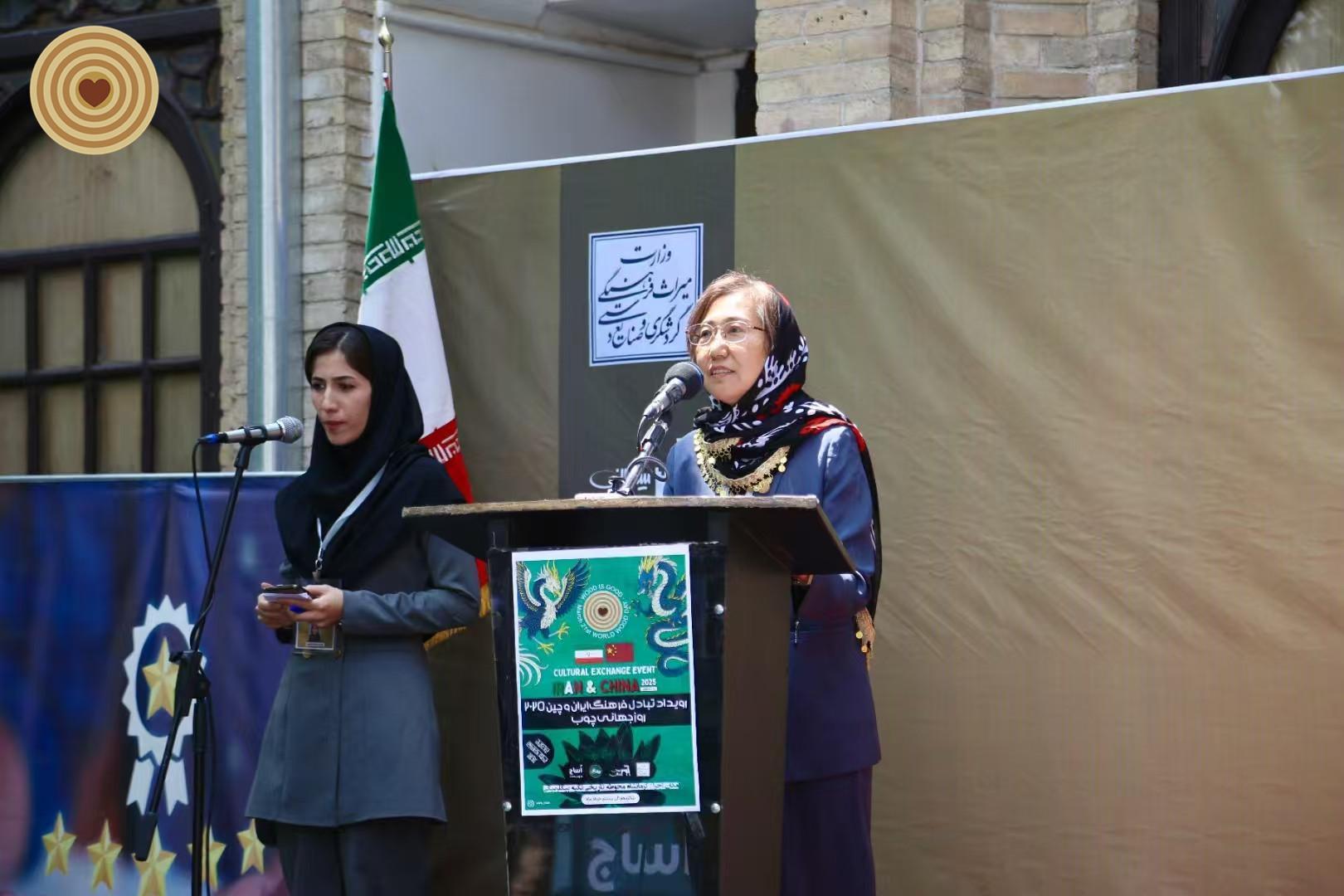国际木文化学会秘书长苏金玲女士带队中方8位木雕艺术家参与,并在开幕式上发表热烈致辞祝贺中伊木文化交流活动隆重开幕。